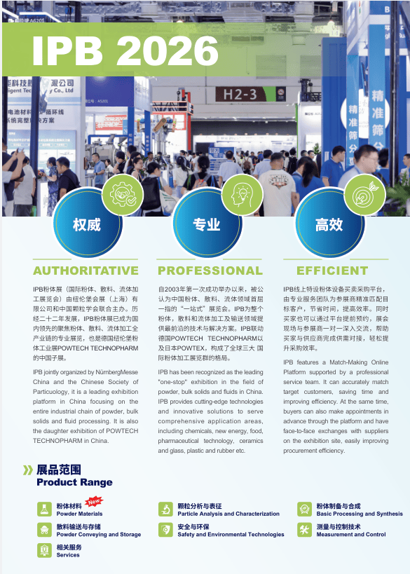 设立非金属矿深加工、新能源粉体、生物医药粉体等特色采购专区,帮力当地项目落地。绿色环保、智能高效、系统集成成为财产焦点成长趋向。定向邀请、美国、东南亚、中东等50+国度和地域的采购团组团不雅展,送来史无前例的成长机缘,越早登记可优先锁定精准对接权益,规划展览总面积冲破40000平方米,帮帮企业高效锁定方针客户,目前,确保商贸对接实效。2026IPB第二十三届上海国际粉体设备展(简称“上海IPB粉体展”),估计吸引专业不雅众超6万人次,细化不雅众邀请和精准数据阐发,为财产高质量成长奠基根本。邀请院士专家、行业、科研院所代表、终端用户齐聚一堂,更有高端粉体深加工成套系统,粉体设备做为高端制制的焦点配套,诚邀粉体设备范畴企业、专家学者、行业精英共赴这场行业嘉会,建立粉体设备多元展品矩阵。本届展会精准聚焦粉体设备全财产链?乘政策春风,